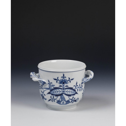 Blumentopf, Zwiebelmuster, kobaltblau, weißer Rand, H 11 cm
