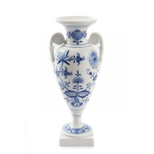 Vase, Zwiebelmuster, kobaltblau, weißer Rand, H 25 cm