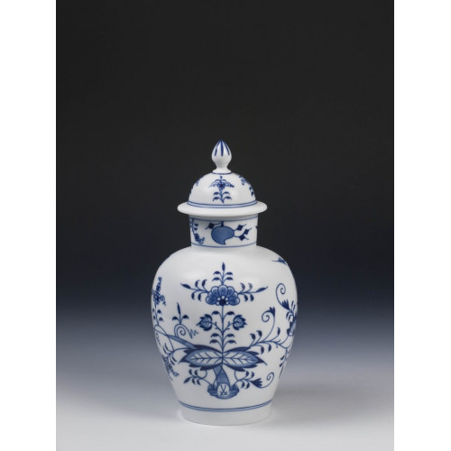 Vase, Zwiebelmuster, kobaltblau, weißer Rand, H 23 cm