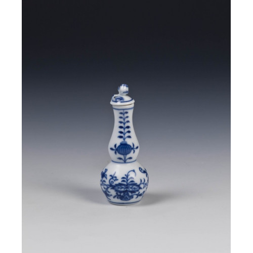 Flakon, Zwiebelmuster, kobaltblau, weißer Rand, H 8 cm