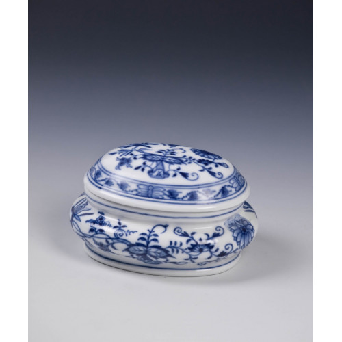 Dose, Zwiebelmuster, kobaltblau, weißer Rand, L 12 cm