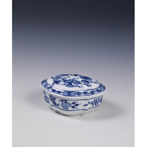 Dose, Zwiebelmuster, kobaltblau, weißer Rand, L 9,5 cm