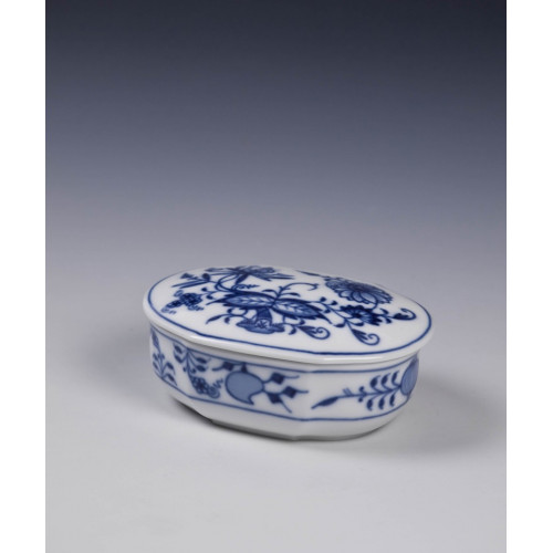 Dose, Zwiebelmuster, kobaltblau, weißer Rand, L 9,5 cm