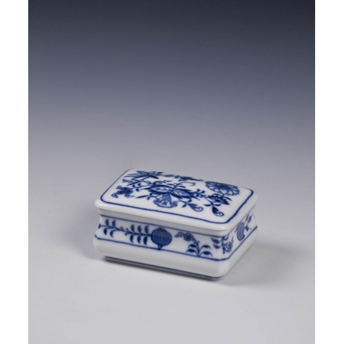 Dose, Zwiebelmuster, kobaltblau, weißer Rand, 7,5x5,5 cm