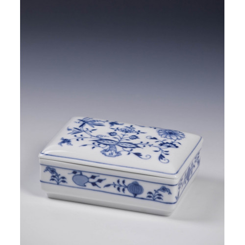 Dose, Zwiebelmuster, kobaltblau, weißer Rand, 11x8,5 cm