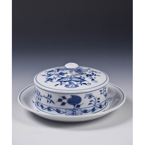 Käsedose, Zwiebelmuster, kobaltblau, weißer Rand, 10,5 cm