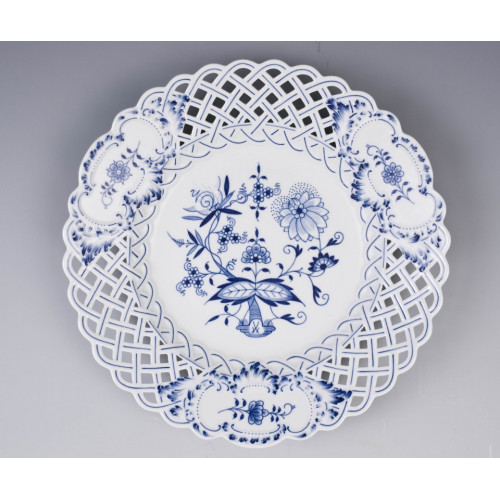 Teller, durchbr., Zwiebelmuster, kobaltblau, weißer Rand, ø 29 cm