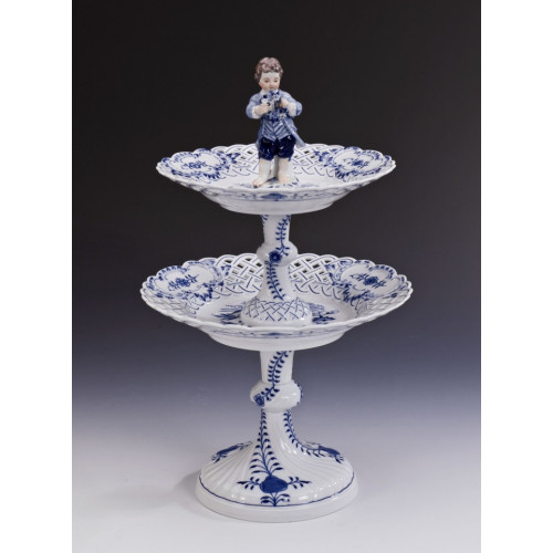 Etagere,durchbr. mit Gärtner, Zwiebelmuster, kobaltblau, weißer Rand, 46,5 cm
