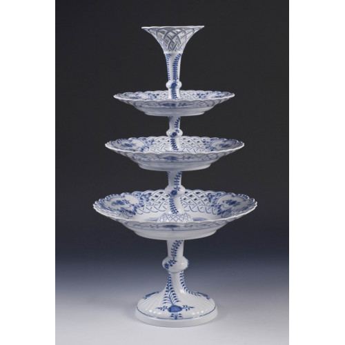 Etagere,durchbr. mit Vase, Zwiebelmuster, kobaltblau, weißer Rand, 62,5 cm