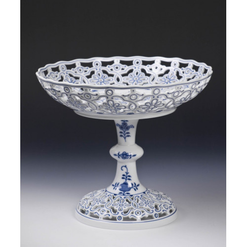 Schale auf Fuß durchbrochen, Zwiebelmuster, kobaltblau, weißer Rand, 22 cm