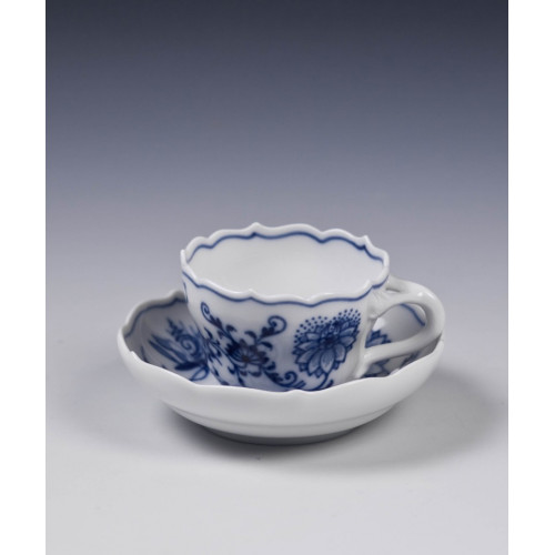 Miniaturtasse Neuer Ausschnitt, Zwiebelmuster, kobaltblau, weißer Rand, 0,04 l