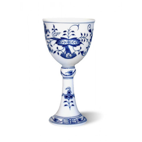 Weinbecher mit Stiel, Zwiebelmuster, kobaltblau, weißer Rand