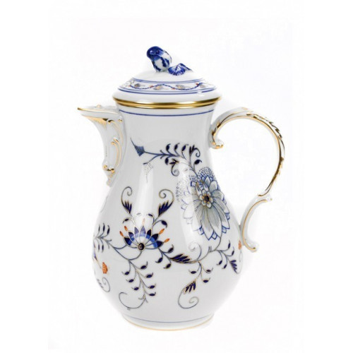 Kaffeekanne, Form "Neuer Ausschnitt", Zwiebelmuster, kobaltblau, rot- und goldschattiert, Goldrand, V 1,20 l