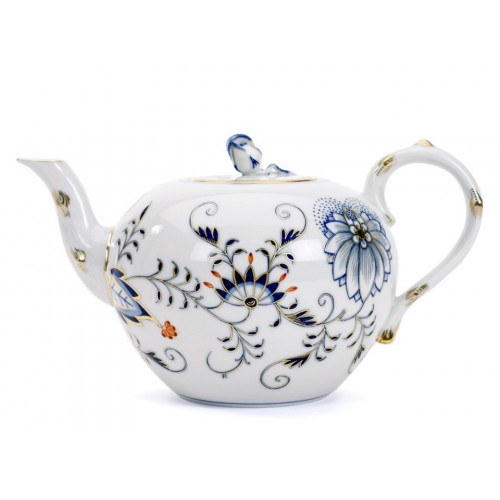 Teekanne, Form "Neuer Ausschnitt", Zwiebelmuster, kobaltblau, rot- und goldschattiert, Goldrand, V 1,00 l