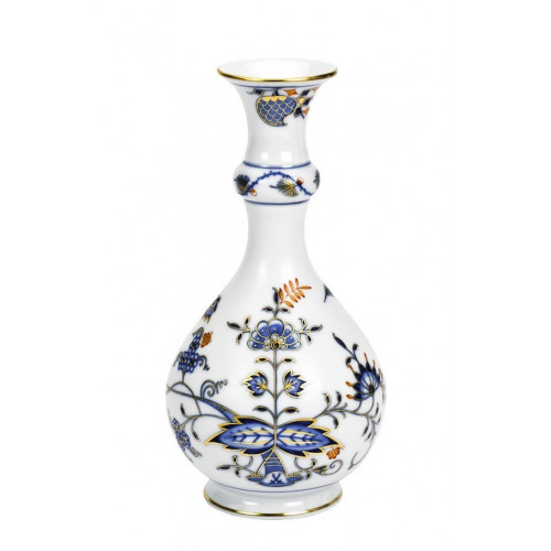 Vase, Form "Neuer Ausschnitt", Zwiebelmuster, kobaltblau, rot- und goldschattiert, Goldrand, H 16 cm