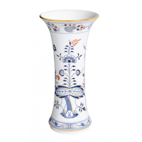 Vase, Form "Neuer Ausschnitt", Zwiebelmuster, kobaltblau, rot- und goldschattiert, Goldrand, H 25 cm