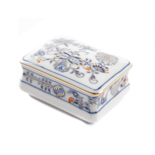 Dose, Zwiebelmuster, kobaltblau, rot- und goldschattiert, Goldrand, 7,5x5,5 cm