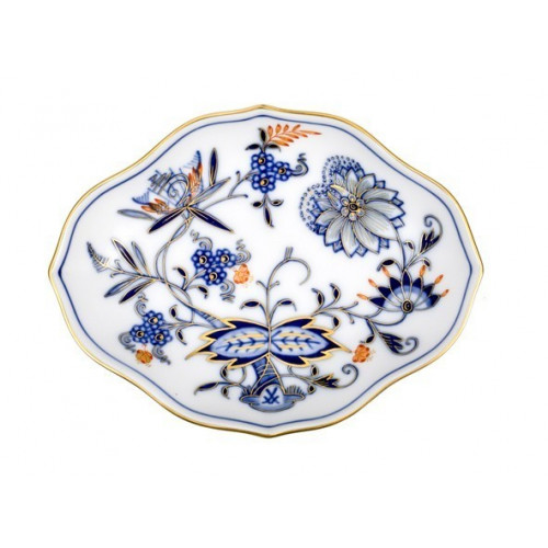 Schälchen, Form "Neuer Ausschnitt", Zwiebelmuster, kobaltblau, rot- und goldschattiert, Goldrand, L 10 cm