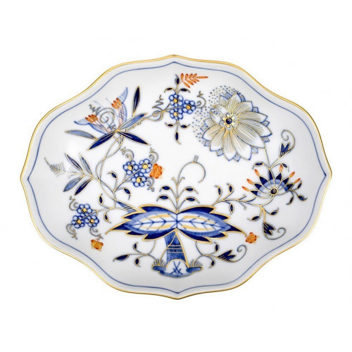Schälchen, Form "Neuer Ausschnitt", Zwiebelmuster, kobaltblau, rot- und goldschattiert, Goldrand, L 16 cm
