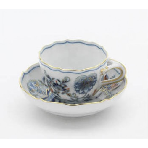 Miniaturtasse Neuer Ausschnitt, Zwiebelmuster, kobaltblau, rot- und goldschattiert, Goldrand, 0,04 l