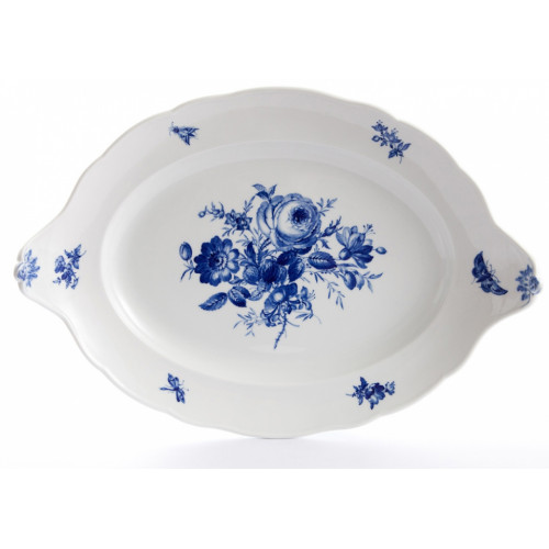 Schale zu 00029, Form "Neuer Ausschnitt", Deutsche Blume, kobaltblau, weißer Rand, 50 cm