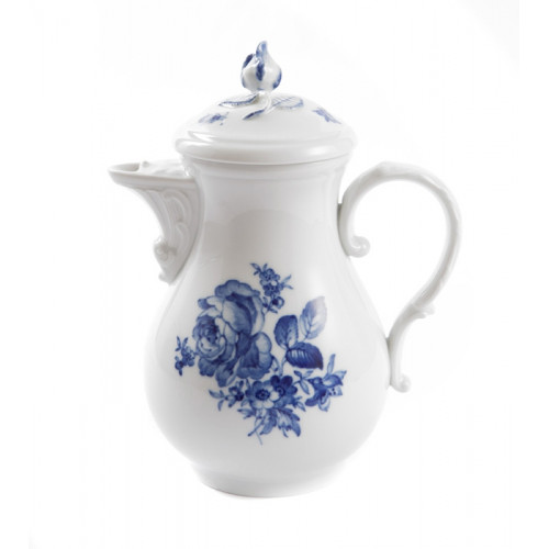 Mokkakanne, Form "Neuer Ausschnitt", Deutsche Blume, kobaltblau, weißer Rand, V 0,45 l