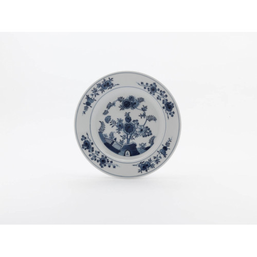 Teller, Form "Glatte Form", Indisches Terrassenmuster, schieferblau, weißer Rand, ø 22 cm