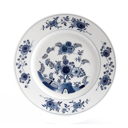 Teller, Form "Glatte Form", Indisches Terrassenmuster, schieferblau, weißer Rand, Ø 29 cm