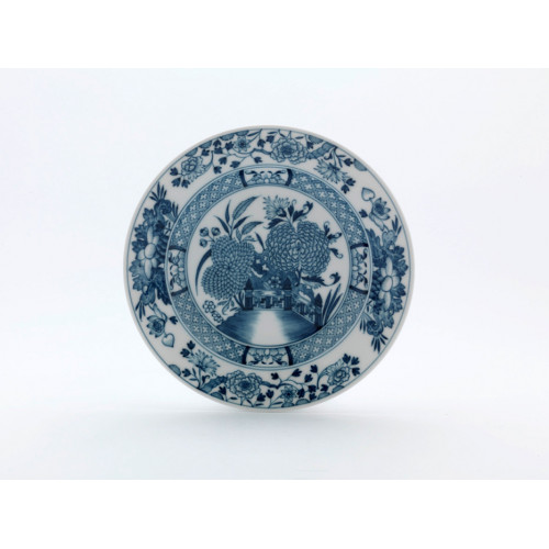 Teller, Form "Glatte Form", Chrysanthemenmuster, schieferblau, weißer Rand, ø 22 cm