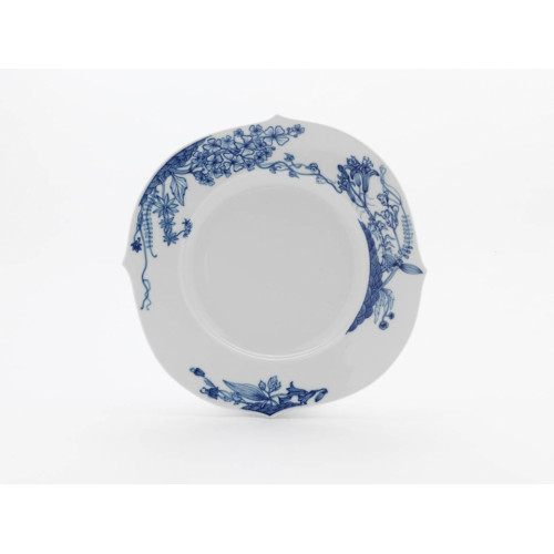 Teller m.H., Form "Wellenspiel Pur", Blaue Hortensie, kobaltblau, weißer Rand, ø 28,5 cm