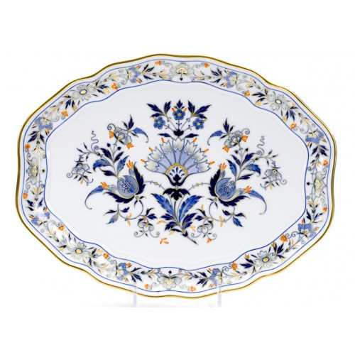 Platte, oval, Fächermuster, kobaltblau, rot- und goldschattiert, Goldrand, 37 cm
