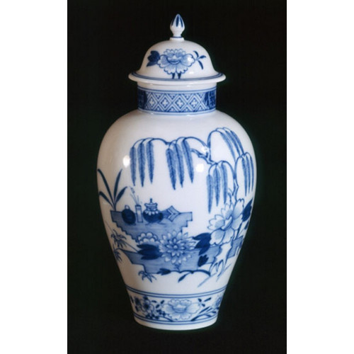 Vase, Chinesisches Weidenmuster, kobaltblau, weißer Rand, H 24,5 cm