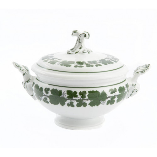 Terrine, rd.m.A. mit Schnörkel, Voller grüner Weinkranz, weißer Rand, 0,65 l