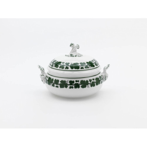 Terrine, rund mit Schnörkel, Form "Neuer Ausschnitt", Voller grüner Weinkranz, weißer Rand, V 1,75 l