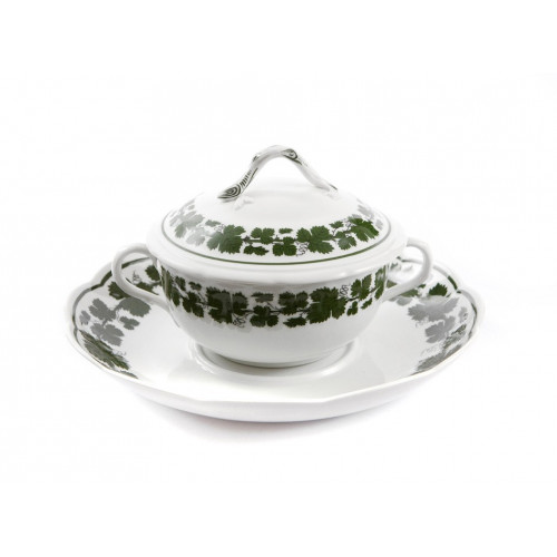 Suppennapf 3tlg., Voller grüner Weinkranz, weißer Rand, 0,35 l
