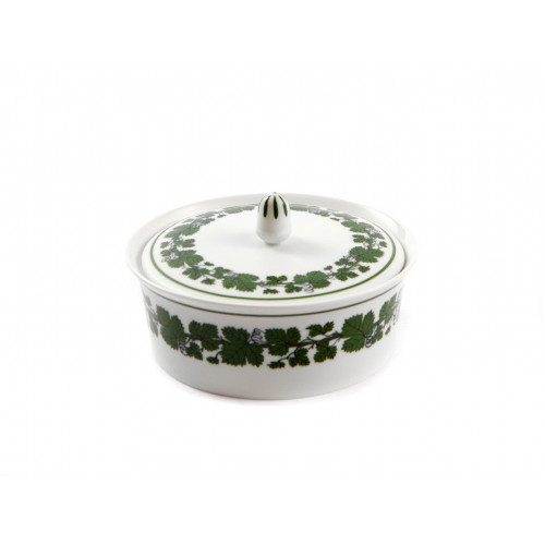 Butterdose 2-teilig, Voller grüner Weinkranz, weißer Rand, 12 cm