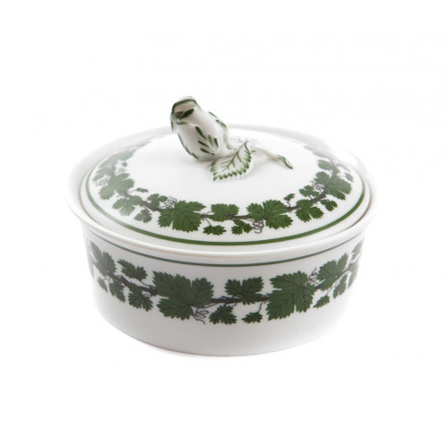 Butterdose 2-teilig, Voller grüner Weinkranz, weißer Rand, 11 cm