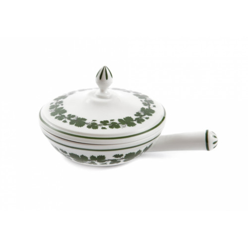 Tiegel, 2-teil., Form "Neuer Ausschnitt", Voller grüner Weinkranz, weißer Rand, 10 cm