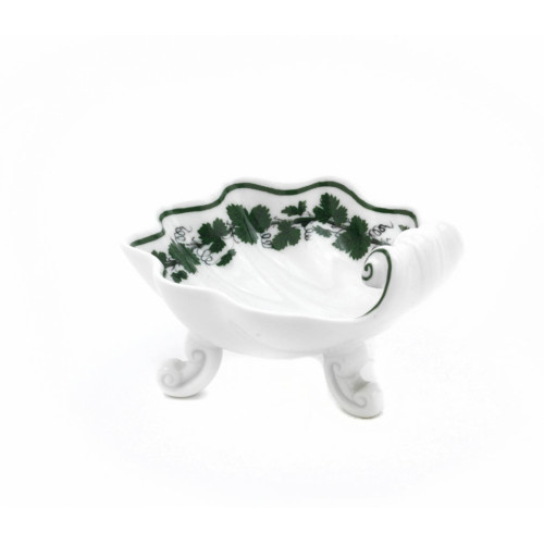 Salzgefäß, Form "Neuer Ausschnitt", Voller grüner Weinkranz, weißer Rand, 10x9 cm