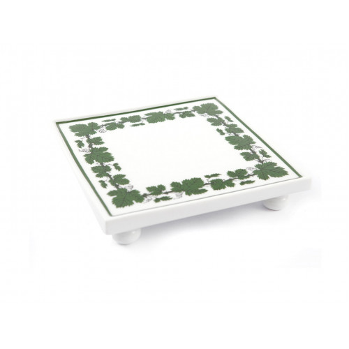 Untersetzer, Form "Neuer Ausschnitt", Voller grüner Weinkranz, weißer Rand, 12 cm