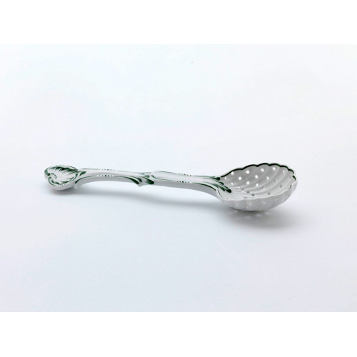 Zuckerlöffel, Voller grüner Weinkranz, weißer Rand, L 20 cm