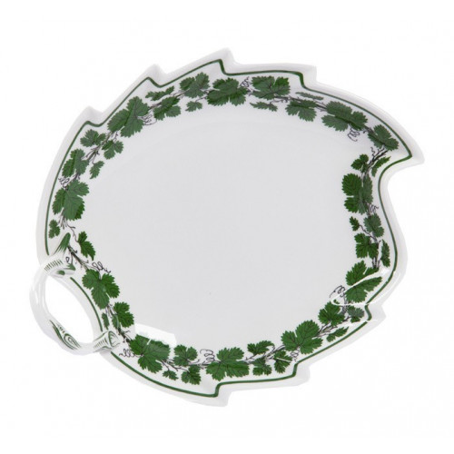 Konfektblatt, Form "Neuer Ausschnitt", Voller grüner Weinkranz, weißer Rand, L 22 cm