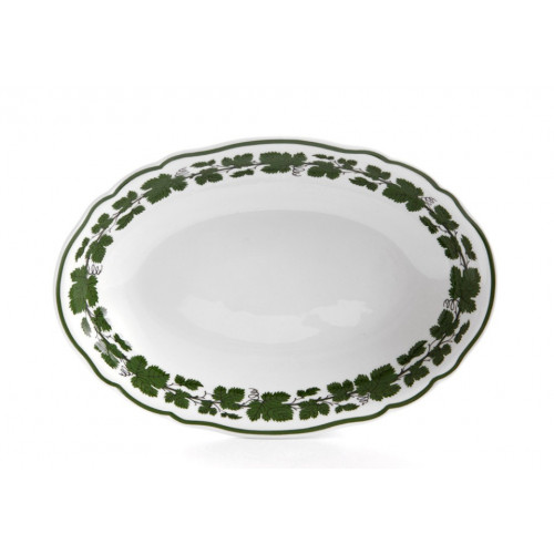 Beilageschale oval, Voller grüner Weinkranz, weißer Rand, 26,5 cm