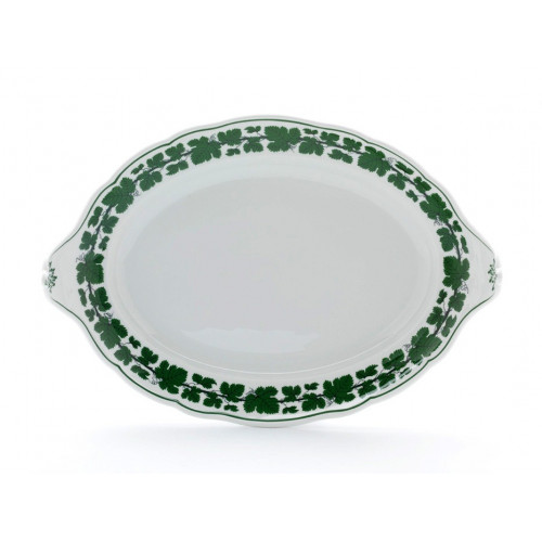 Schale zu 00029, Voller grüner Weinkranz, weißer Rand, 50 cm