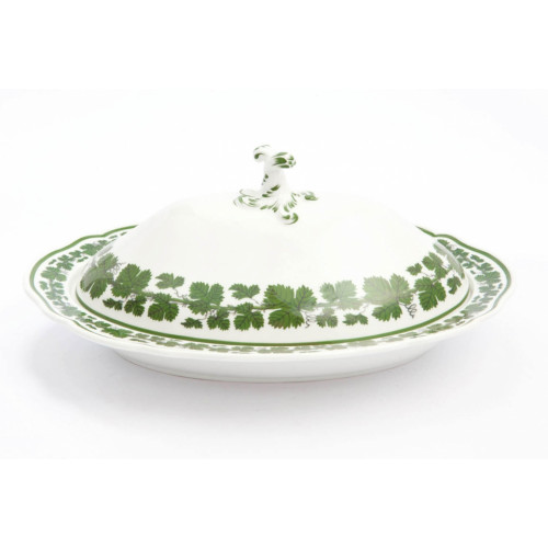 Gemüsenapf, oval, Form "Neuer Ausschnitt", Voller grüner Weinkranz, weißer Rand, 26,5 cm