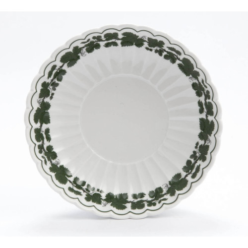 Beilageschale rund,gemuschelt, Form "Neuer Ausschnitt", Voller grüner Weinkranz, weißer Rand, ø 20 cm