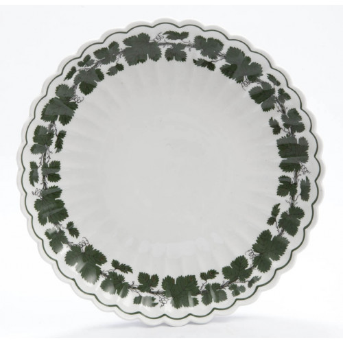 Beilageschale rund,gemuschelt, Form "Neuer Ausschnitt", Voller grüner Weinkranz, weißer Rand, ø 28 cm
