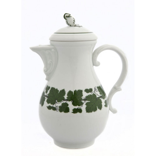 Kaffeekanne, Form "Neuer Ausschnitt", Voller grüner Weinkranz, weißer Rand, V 0,85 l