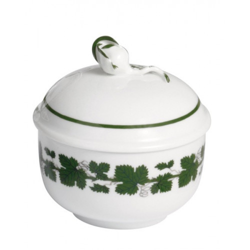 Zuckerdose, Form "Neuer Ausschnitt", Voller grüner Weinkranz, weißer Rand, Ø 9 cm