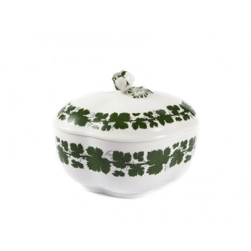 Zuckerdose, oval, Voller grüner Weinkranz, weißer Rand, 14 cm